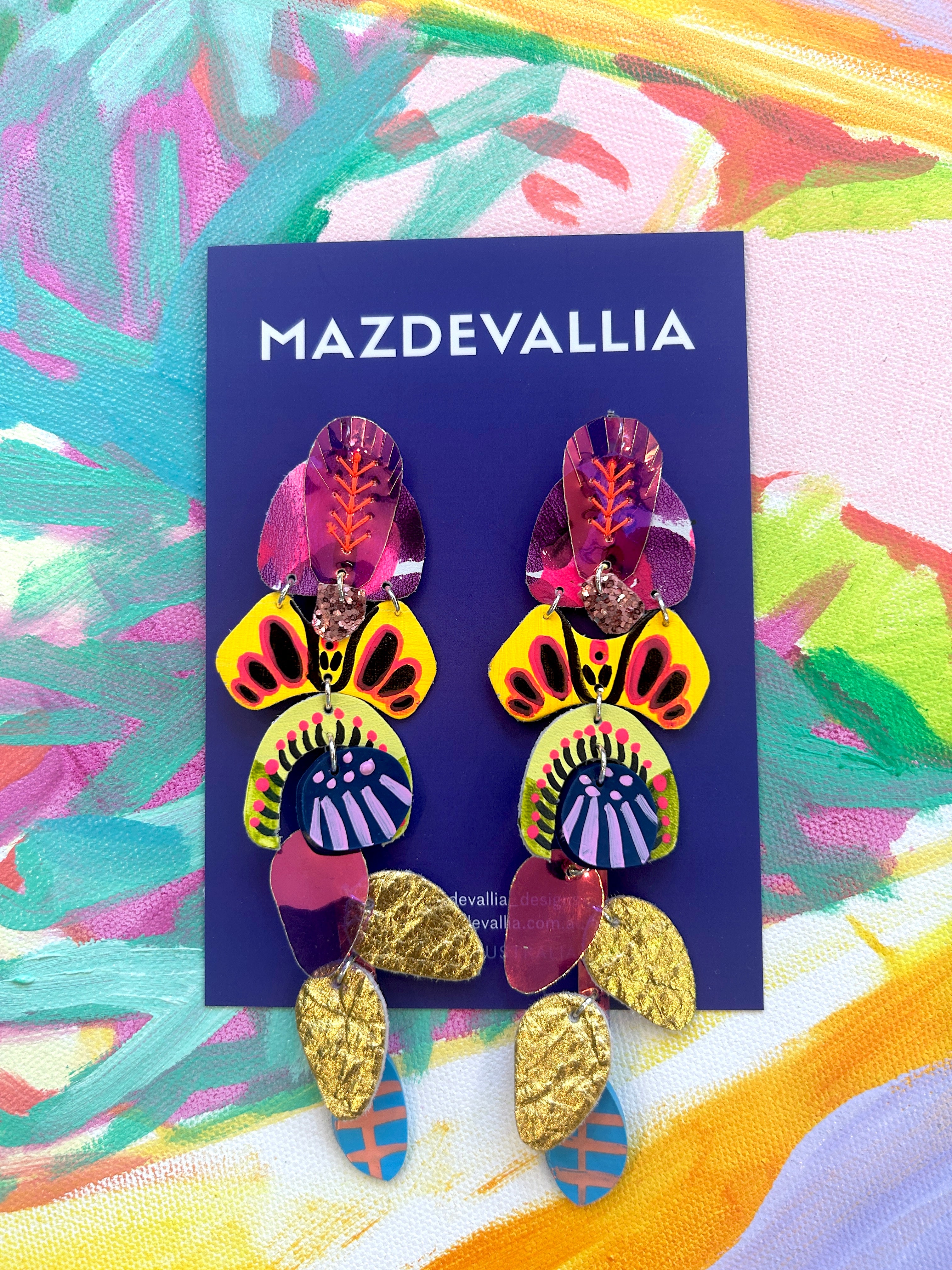 All earrings are designed, painted and completely handmade right here by me in my Adelaide studios. No two pairs are ever exactly the same.